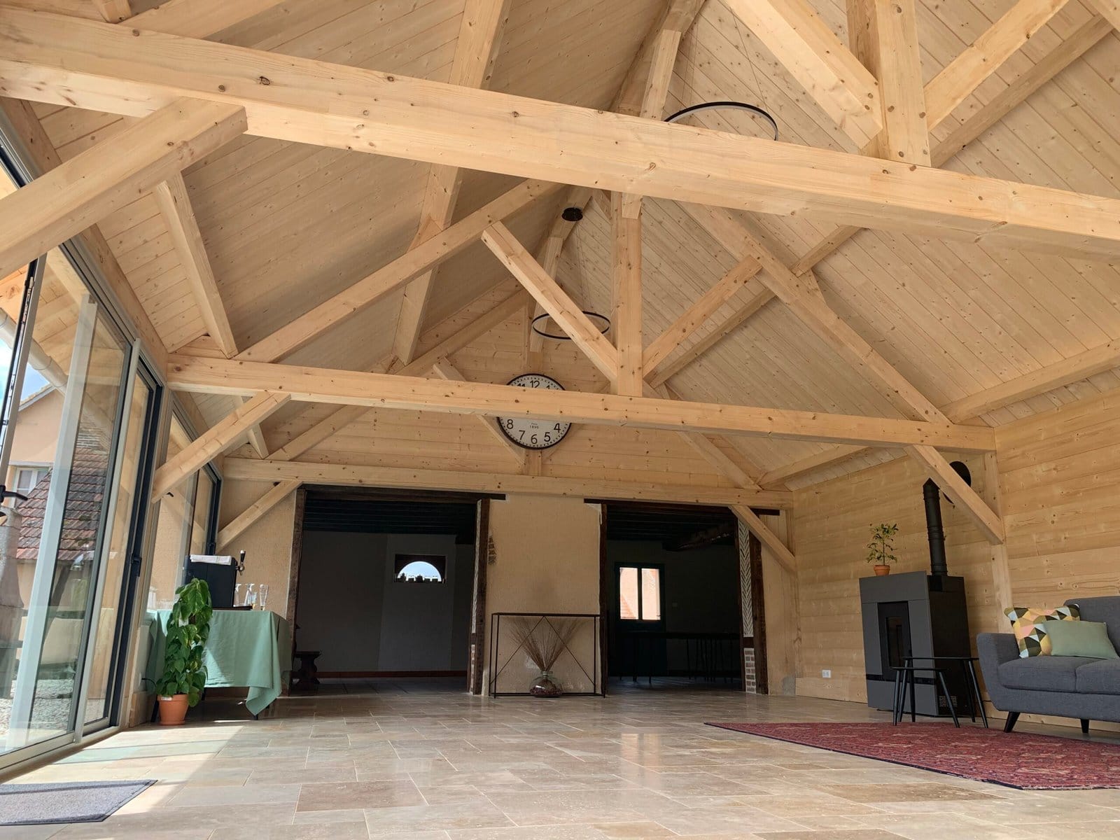 L’espace, authentique et chaleureux, se distingue par ses poutres apparentes et sa configuration en L, permettant une organisation modulable selon vos besoins : travail en groupe, ateliers, temps d’échange ou moments plus informels.