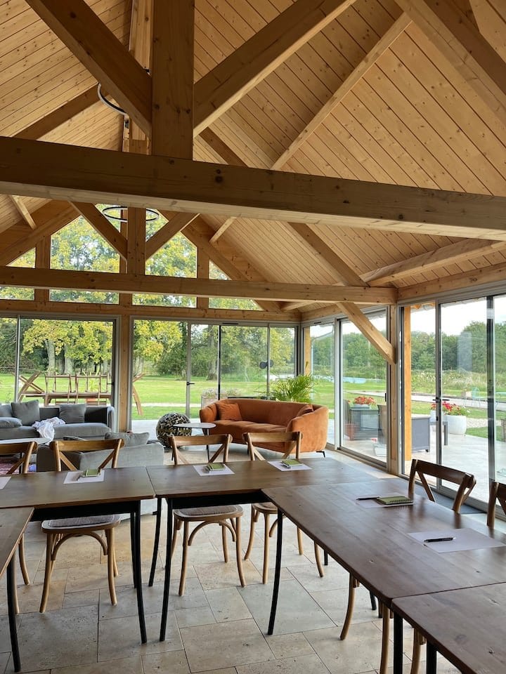 Située en pleine nature, au cœur de la Sologne, la salle offre un cadre calme et ressourçant, propice à la concentration, aux échanges et à la prise de recul.
